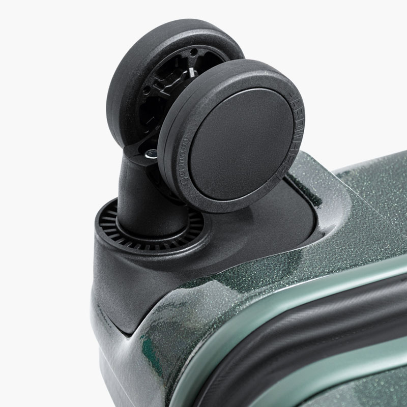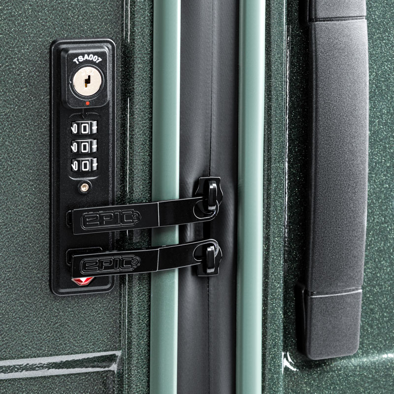Den gummibelagte, vandafvisende lynlås beskytter mod fugt, mens EPIC Standard-hjulsystemet med Smooth DualTRAK™ sikrer en glidende og støjsvag kørsel på alle overflader. Systemet gør det desuden nemt at udskifte hjulene, hvis de bliver slidte – eller hvis du ønsker en anden model, der passer bedre til din rejse.