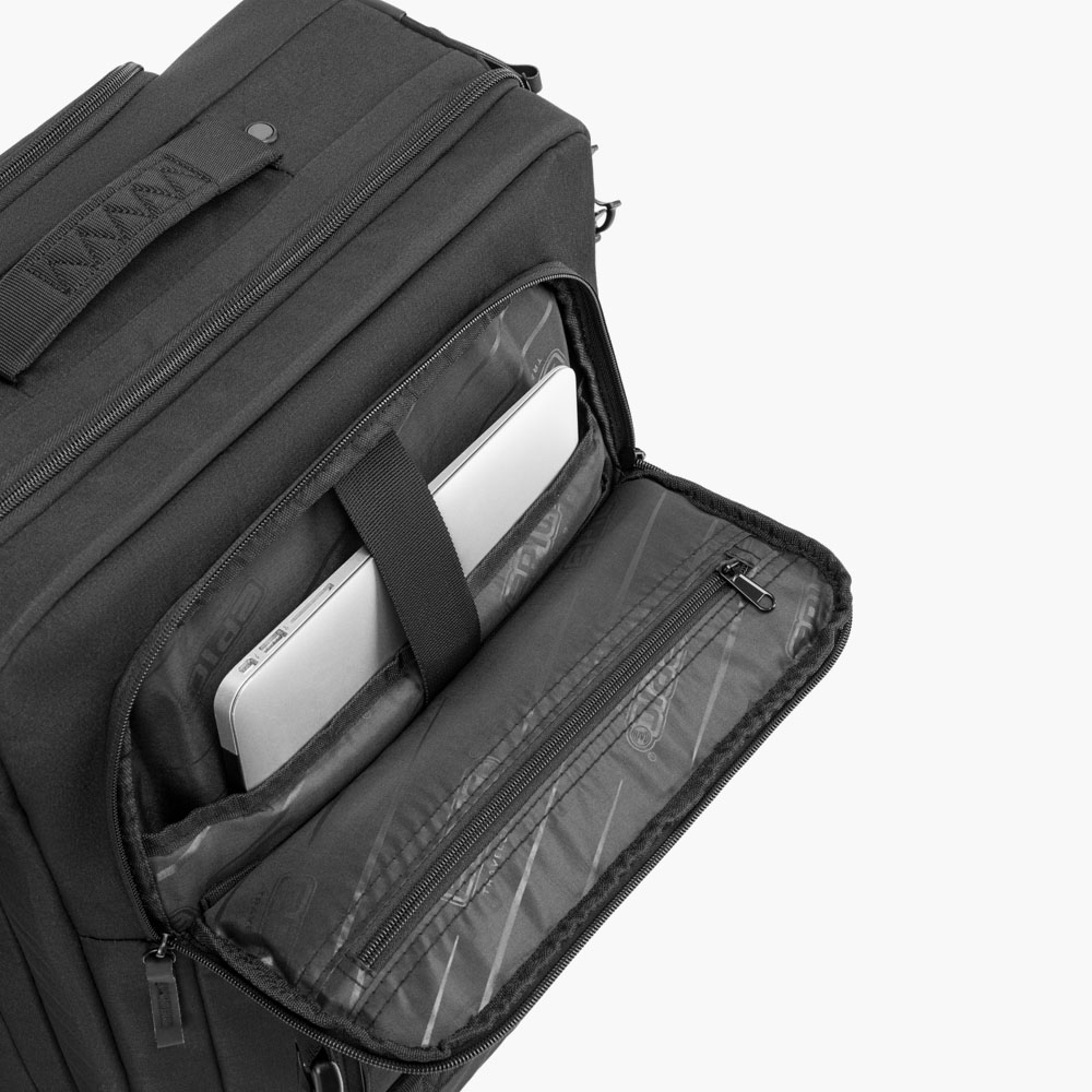 Explorer NXT Backpack Computer Trolley har masser af opbevaringsmuligheder både indvendigt og udvendigt, herunder rum til bærbar computer, tablet og dokumenter på forsiden for hurtig adgang. Indvendigt finder du organiserede rum med pakkestropper og to interne skillevægge, der gør det nemt at holde styr på alt fra elektronik til tøj.