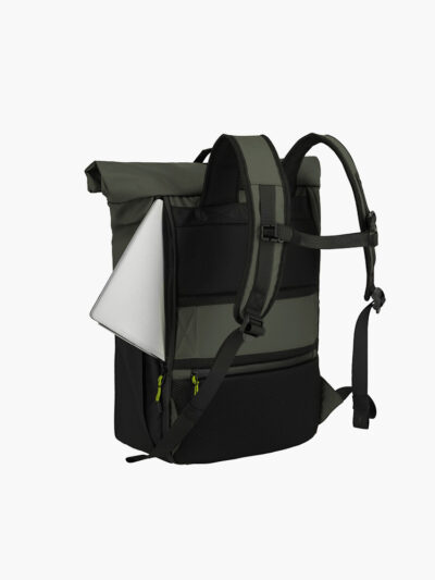 Når du har brug for hænderne fri, kan du nemt bære den som en rygsæk – de polstrede skulderstropper og rygpaneler giver maksimal komfort, selv på længere ture. Udenpå finder du flere smarte spænder, så tasken kan spændes ind og tilpasses efter indholdet.