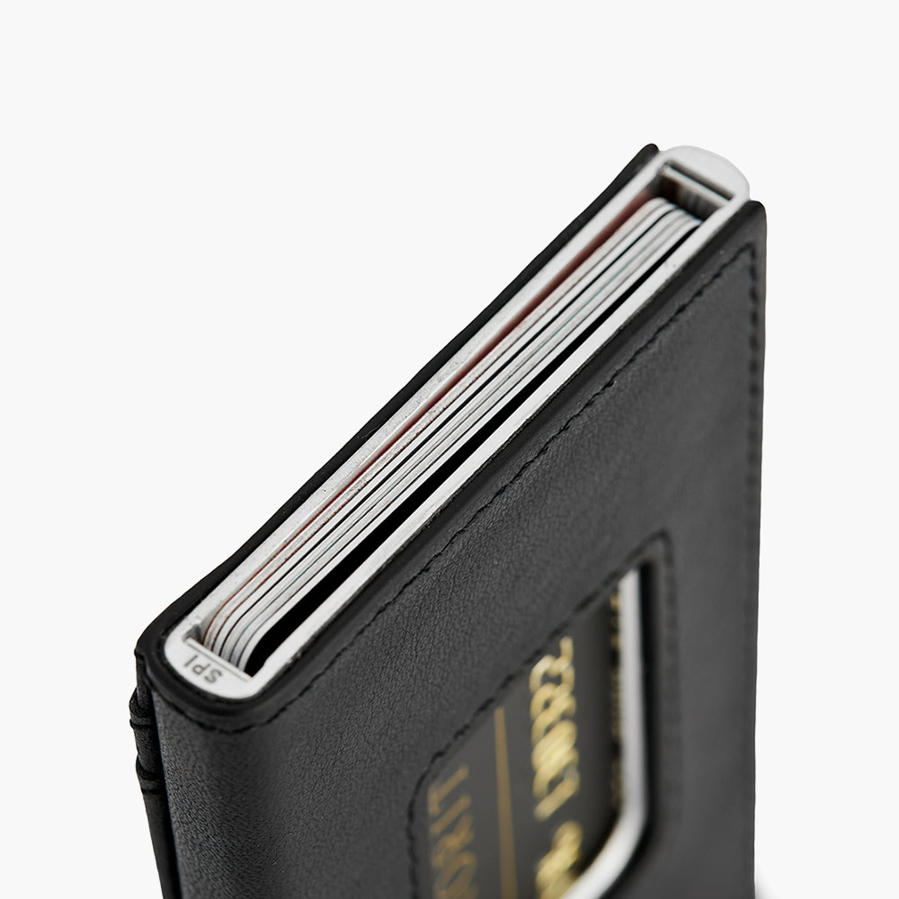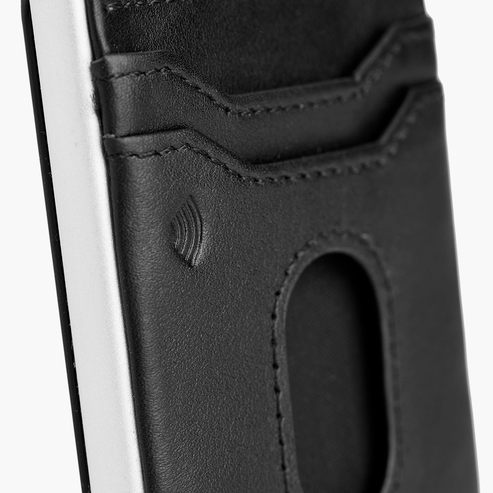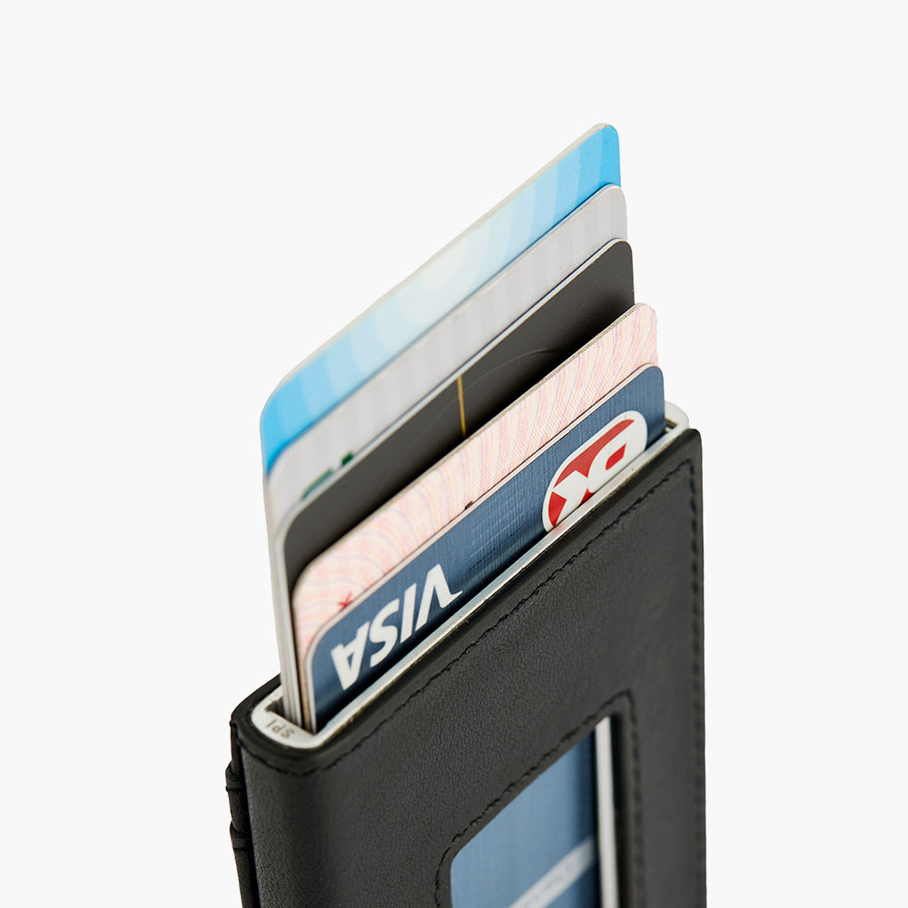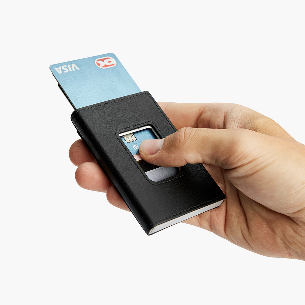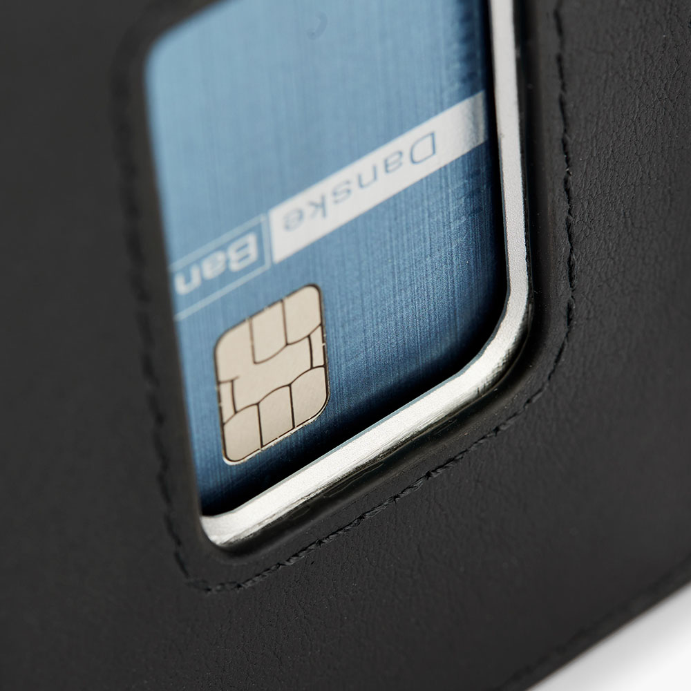 Med plads til mindst 7 kort får du masser af opbevaringsplads, samtidig med at dine kort holdes kompakte og let tilgængelige. Hovedrummet har plads til 5 kort, og du kan nemt skubbe dem op med en hurtig bevægelse af tommelfingeren. Derudover er der plads til yderligere 2 kort på ydersiden – perfekt til rejsekort eller det kort, du bruger mest.