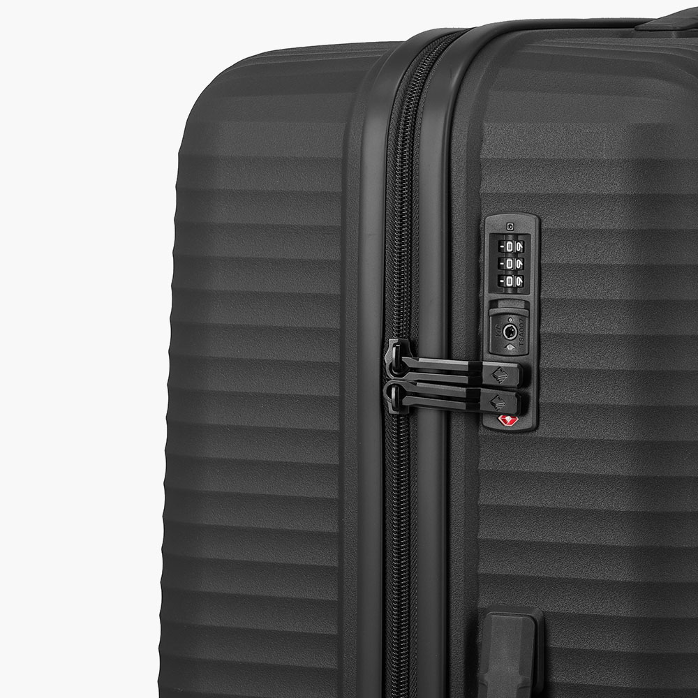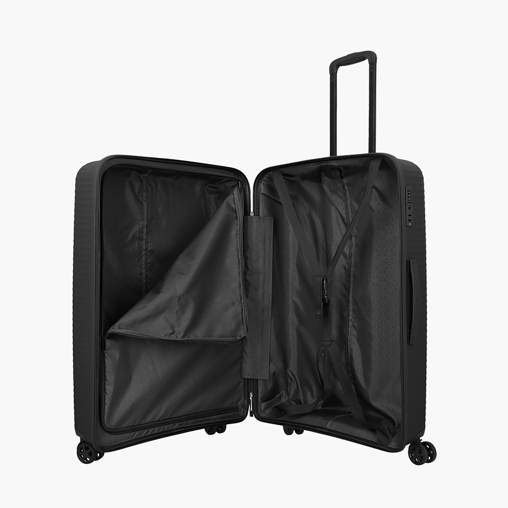 Indvendigt finder du praktiske pakkestropper og adskilte rum, så du altid kan holde styr på din bagage. De indbyggede TSA-godkendte låse på medium- og store modellen giver ekstra sikkerhed under rejsen, mens den justerbare teleskophåndtag og praktiske sidehåndtag gør håndteringen let og komfortabel.