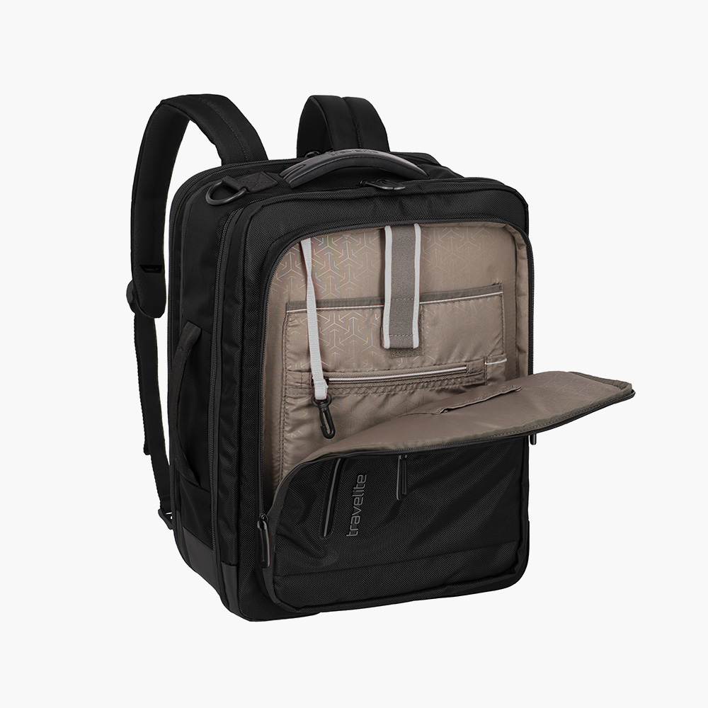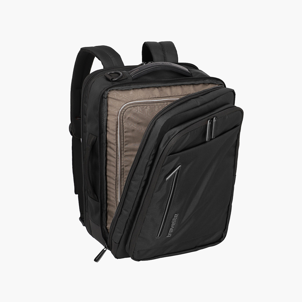 Travelite Crosslite kabinetaske/rygsæk er det perfekte valg til dig, der ønsker fleksibilitet, stil og komfort, når du rejser. Den er designet i en smart 2-i-1 funktion, så du kan bære den både som klassisk rygsæk og som en elegant taske med skulderrem og bærehåndtag. Det gør den ideel til både fritidsrejser og som en professionel forretningspartner på farten.