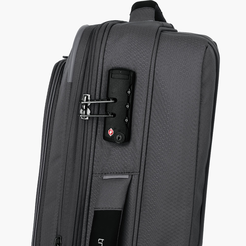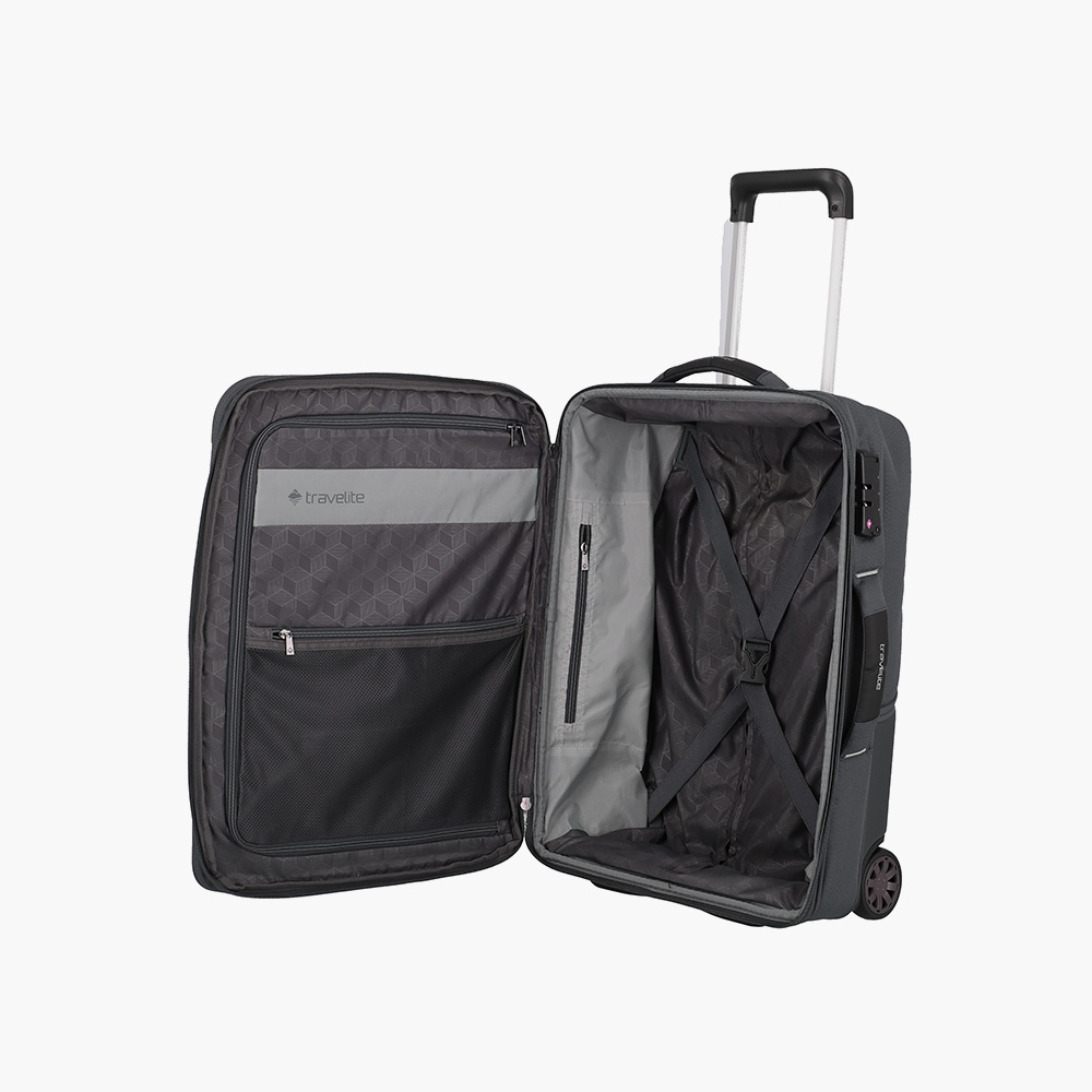 Takket være den integrerede udvidelsesfunktion kan dybden øges fra 20 til 23 cm, hvilket giver endnu mere pakkeplads. Med en samlet kapacitet på mellem 42-46 liter får du markant mere plads end i en traditionel kabinekuffert – perfekt til både weekendture, forretningsrejser og længere ophold, hvor du vil rejse uden indchecket bagage.