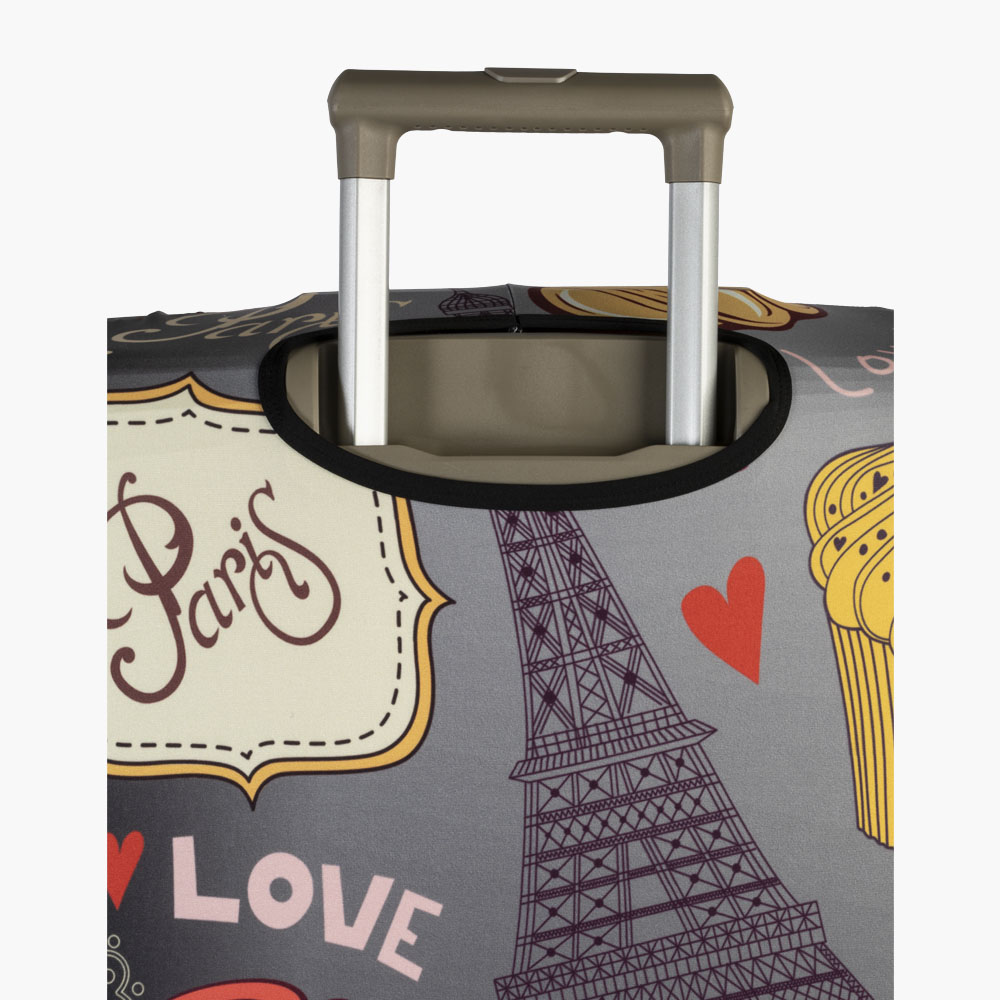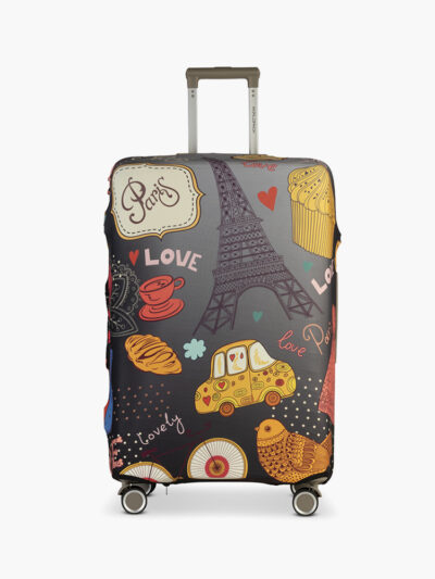 Giv din kuffert et personligt look med Love Paris kuffertovertræk i stor. Det stilfulde design med Eiffeltårnet og Paris-motiver samt teksten “Love Paris” gør din kuffert nem at genkende på bagagebåndet. Det elastiske materiale sikrer en god pasform og gør overtrækket nemt at tage af og på, samtidig med at det beskytter mod snavs og ridser.